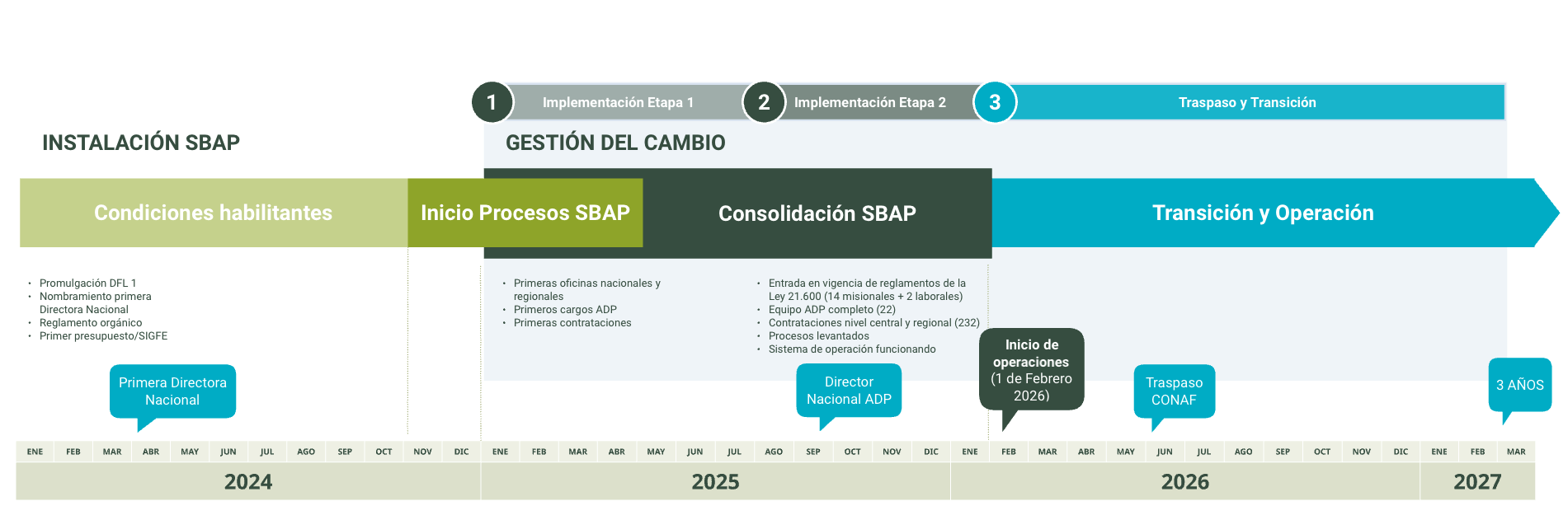 La legitimidad del cambio se construye mediante transparencia, participación y aprendizaje continuo, de modo que las acciones no solo aseguren eficiencia operativa, sino que fortalezcan la confianza en la nueva institucionalidad. Así, la EGC no se limita a un plan técnico de implementación, sino que se proyecta como un marco adaptativo y relacional que permite enfrentar la complejidad del proceso, consolidando al SBAP como un actor clave en la conservación la biodiversidad en Chile.